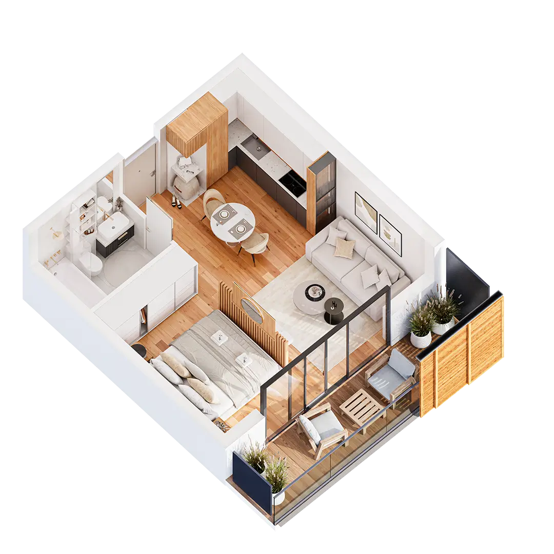 Powierzchnia użytkowa z balkonem 42.1 m²